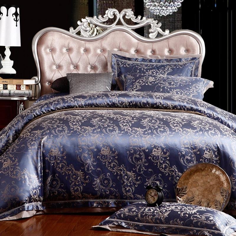 This blue satin bedding sets showcases the perfect updated, modern print. This navy blue bedding sets is Refined tastes in a contemporary design. The natural ambience created by the floral bedding sets will entice you to ease into the luxurious ensemble and forget the chaos of your day. This royal style bedding sets brings a breath of air new life into any bedroom.